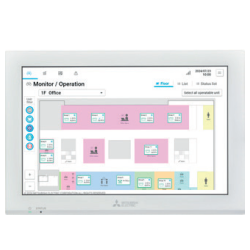 Control de sistema, para 50 grupos o 50 unidades interiores de aire acondicionado (400 grupos con módulos de expansión), modelo AE-C400E "MITSUBISHI ELECTRIC", de 306x211x71,8 mm, con pantalla táctil LCD de 11,1", servidor web, servicio de control y monitoreo de la instalación de forma remota MELCloud Commercial y conectable al bus MNet.