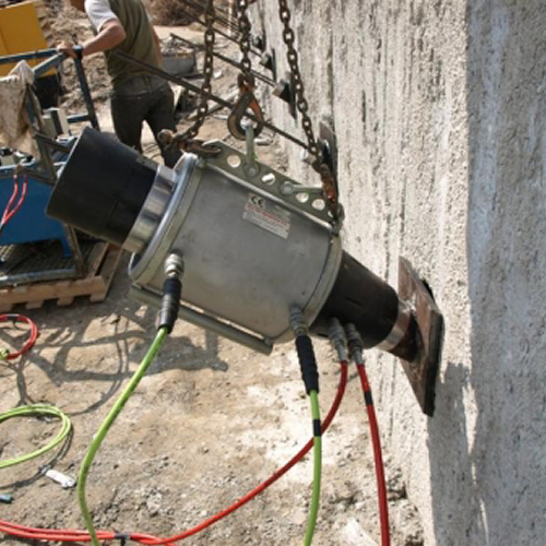Tesado de anclajes permanentes, durante una jornada laboral, mediante equipo formado por gato de tesado multifilar y central hidráulica. | ||