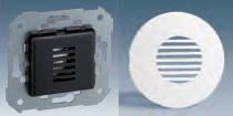 Zumbador, gama alta, tensión de alimentación 230 V, con tapa redonda con rejilla, de color blanco y marco embellecedor para 1 elemento, de color blanco. Instalación empotrada. | ||